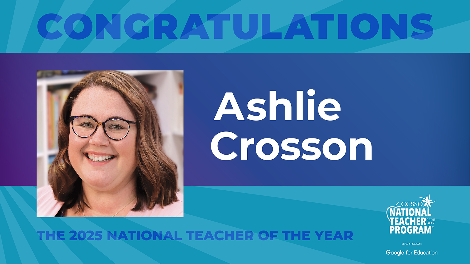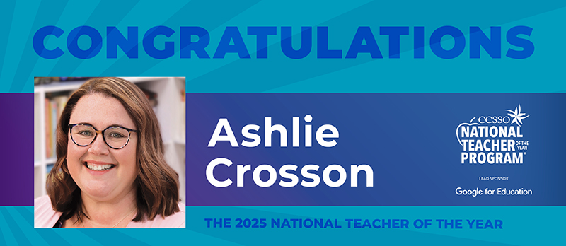 We hope you will help us celebrate Ashlie and elevate the teaching profession by sharing the news on social media! You are welcome to download the social media graphics below. Remember to include the #NTOY25 hashtag in your posts.